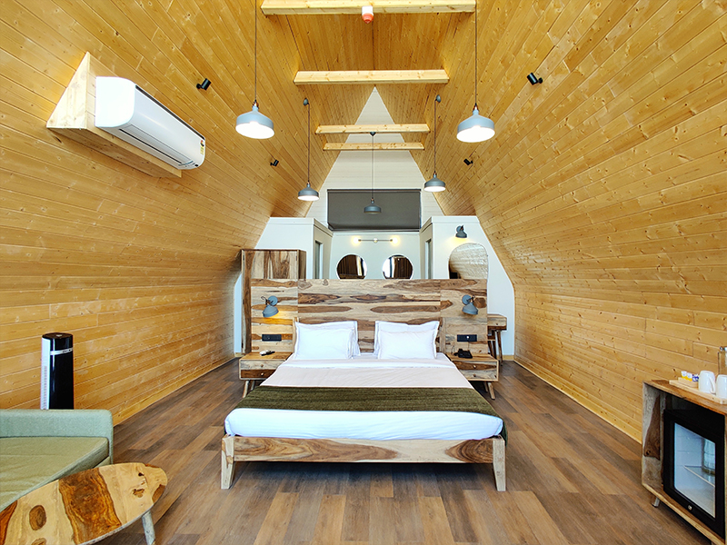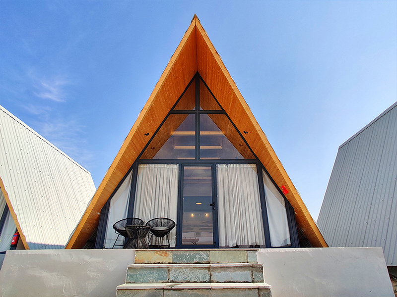 A beautiful collection of triangle-shaped cottages, rising 20ft from the ground, with appealing interiors and glass wall that opens to the wide open sky to let you experience star-gazing from your bed. Step outside and soak up the natural beauty of your surroundings with the Porch Area facility.